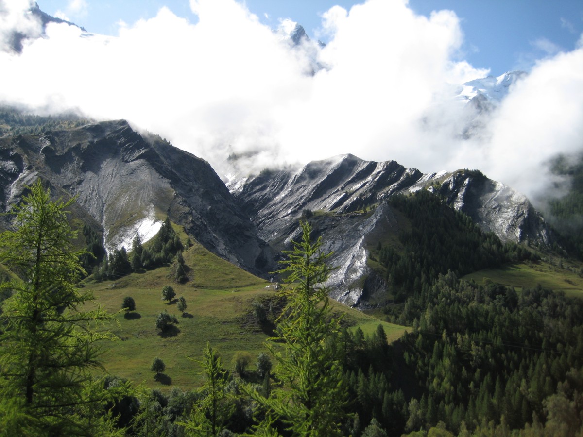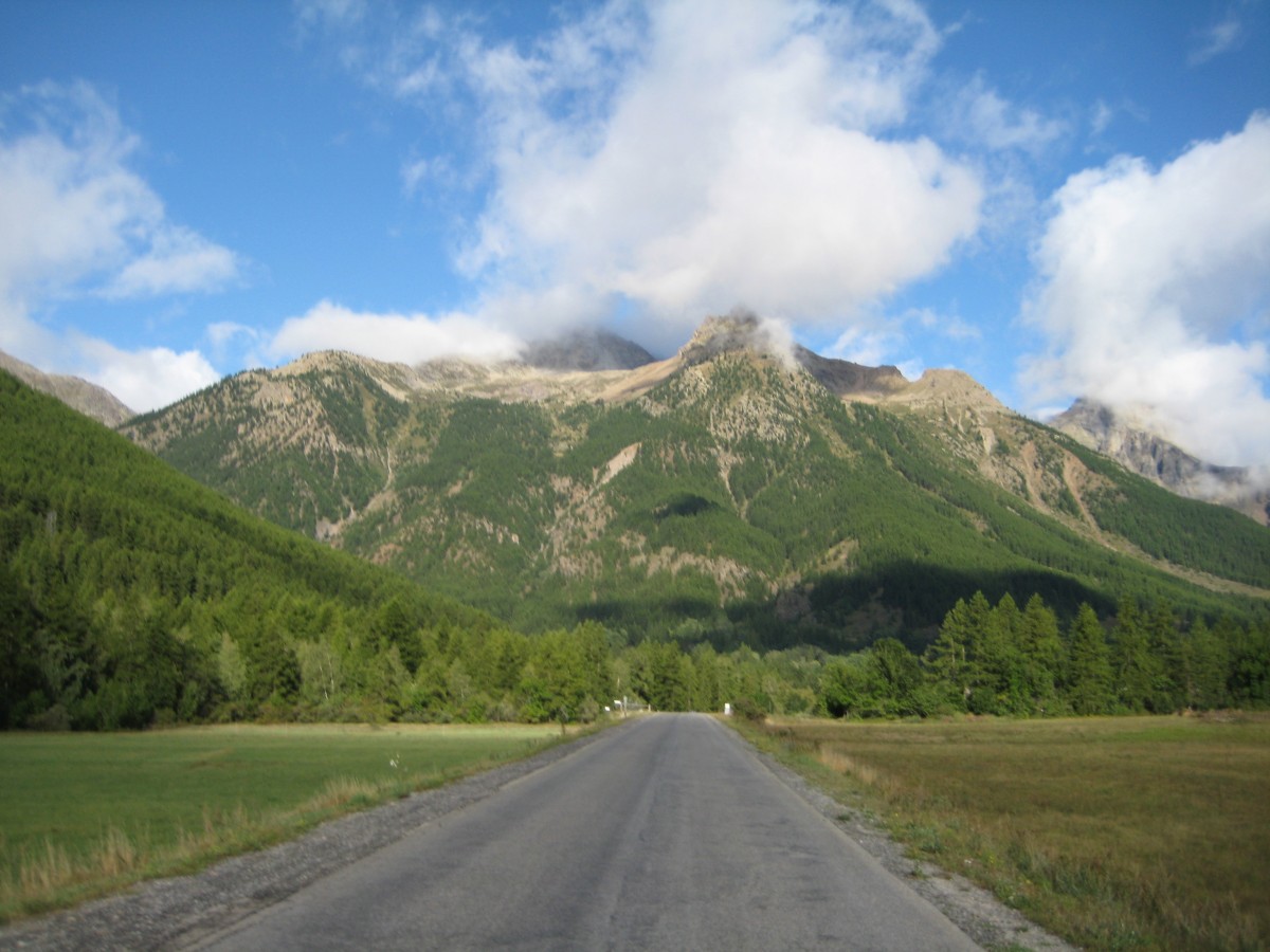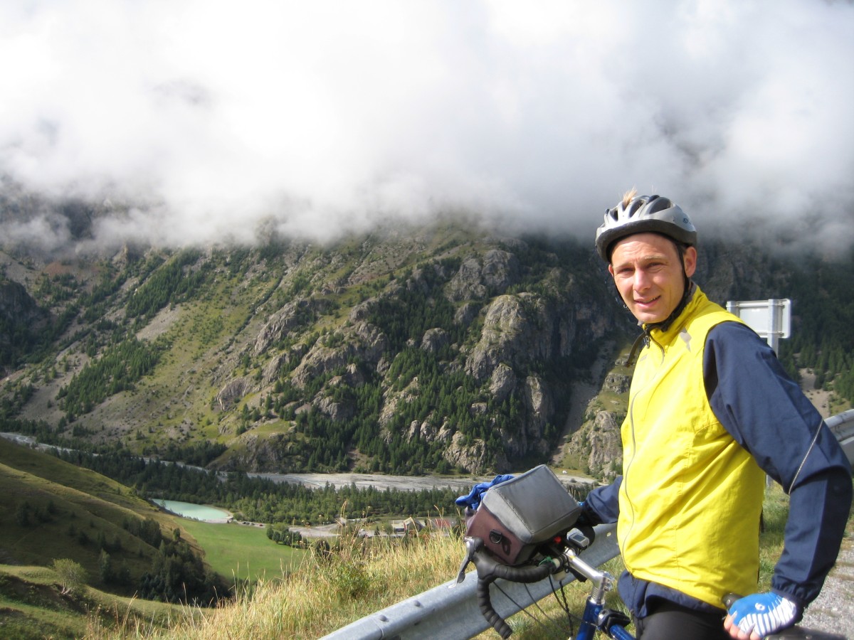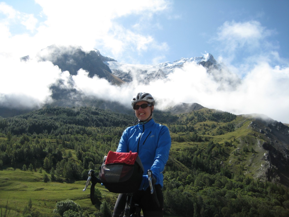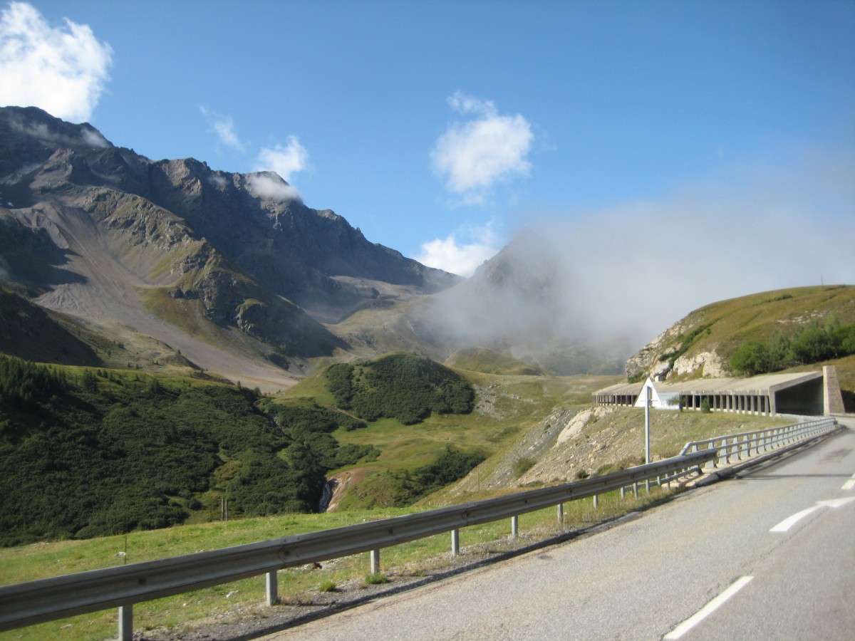 The rain stopped in the morning so we packed up, ate some fromage for breakfast, and started on the col du Lautaret. The morning was very cold (our breath was fogging in the air) so our muscles didn’t warm up, making even the gentle 4-5% gradient feel quite difficult. This was the only time my back actually hurt while riding. It was only about 12km and 600m of climbing to the top from where we camped. We could see a few glaciers and snow on the peaks, though it was a bit cloudy.